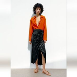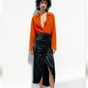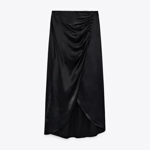 Zara drapped maxi skirt nwt satin black buttons on the front