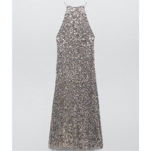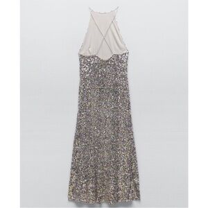 Zara dress knit sequin halter in silver with light pink sequins NEW