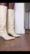 Zara ecru Heeled Leather Knee Boots in off-white. These boots feature a thin heel and a pointed toe.