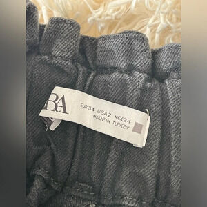 Zara elastic high waist paper bag mom jeans raw hem washed black size 2