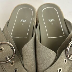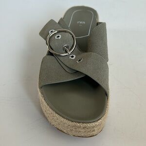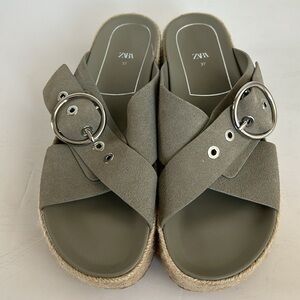 Great used condition Zara sage gray platform espadrille with silver buckle sandal slide