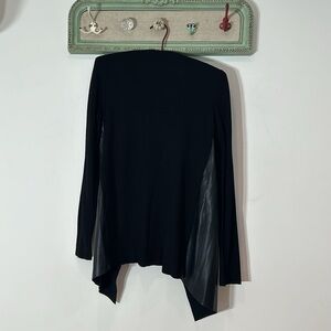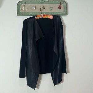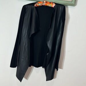 Zara faux leather patchwork black drape front cardigan open front Size medium