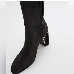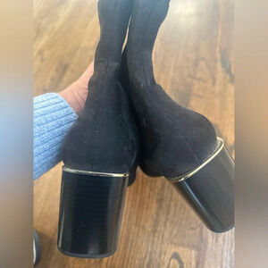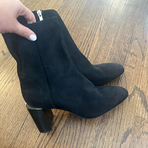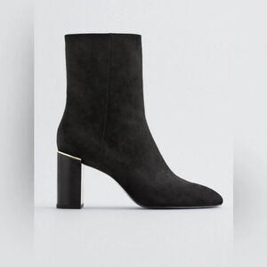 Zara faux suede Block heeled black booties With Gold Details Size 40/ US 9.5