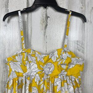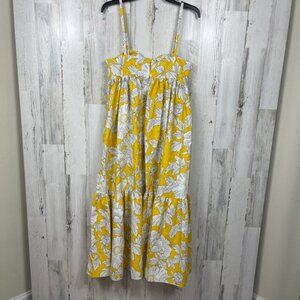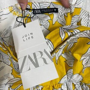 Zara floral cotton poplin sundress NWT yellow white size M tiered maxi event