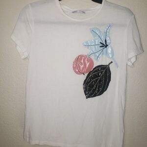 Zara floral white spring tee t-shirt top Small