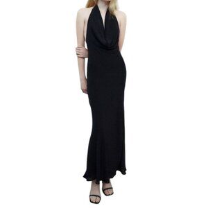 Effortless and dramatic—this Zara maxi dress features a flowy draped silhouette in sleek black. Perfect for 90s/Y2K-inspired styling, it transitions seamlessly from cocktail events to night-out glam. A chic wardrobe essential with timeless edge.