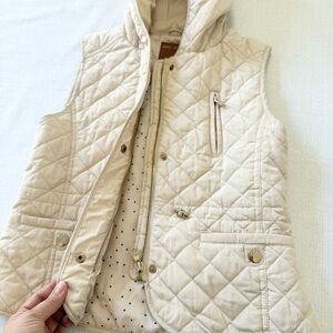 Zara for Girls Size 12 yrs. Ivory Quilted Hooded Vest Pockets Zip Up