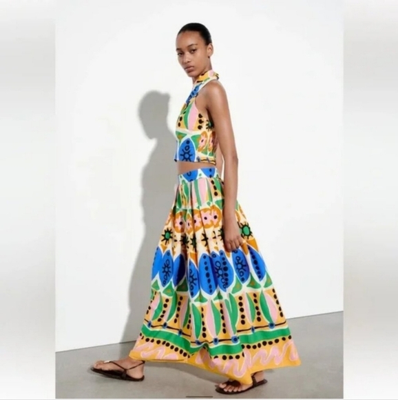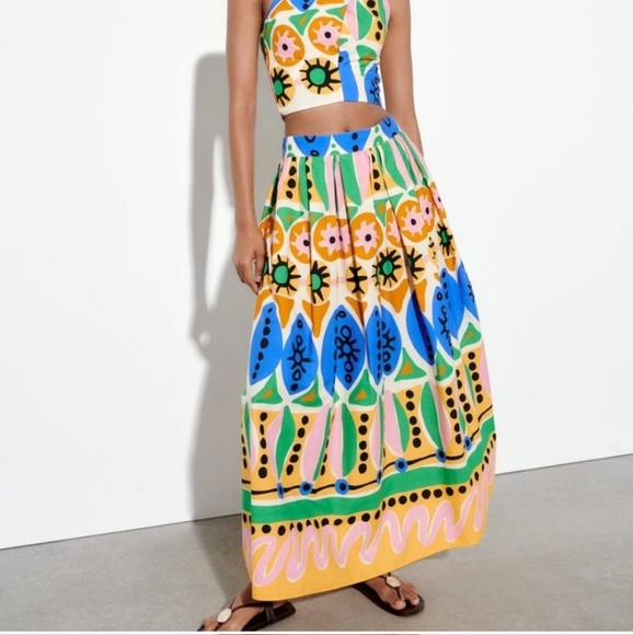 Zara geometric print maxi skirt size xs