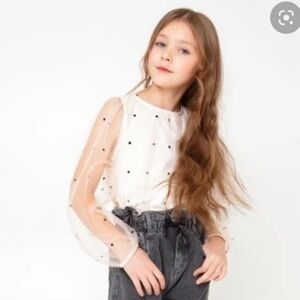 Zara girl soft cream polka dot organza blouse size 13/14Y
