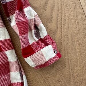 Zara girls plaid Red & Cream Checked Thick Cotton Long jacket button shirt 10