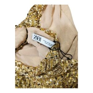 Zara gold sequin open back semi sheer halter blogger favorite mini dress size XL new