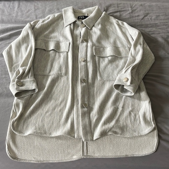 Zara gray button down with silver button details. Extra large front breast pockets. Lightweight and excellent for work wear. Brand new. Never worn.