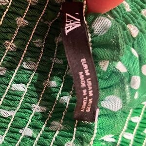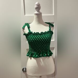 Zara green and white polk dot tank top with adjustable tie straps Size M