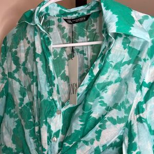 Zara green and white tie dye print tie wrap blouse. New with tags, never been worn. size xs. marching skirt available in other listing.
