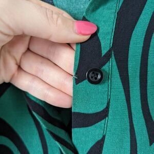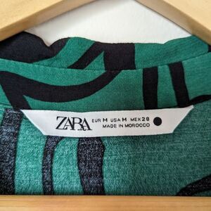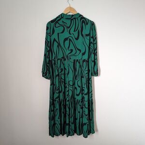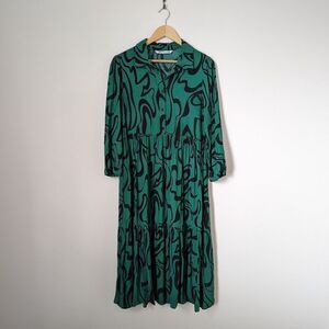 Zara green black geometric printed long sleeve button down tiered midi dress