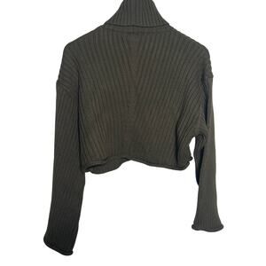 Zara green crop turtleneck knit sweater bell sleeves sz S