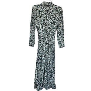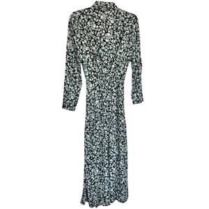 ROUND NECK MIDI DRESS WITH LONG SLEEVES. FRONT RUCHING DETAIL. FRONT BUTTON CLOSURE., OUTER SHELL, 100% viscose. Size XS. NWT The last picture is the measurement of where the last button is to the hem.