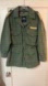Military green Gold appliqué details on front and one shoulder 4 large front snap button pockets Removable quilted liner Lightly factory distressed Front zip with buttons inner tie to adjust waist.