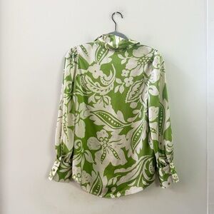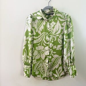 Zara green floral printed blouse. Has slight puff at shoulders. Size XS. Oversized fit and excellent used condition