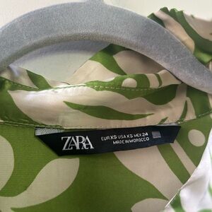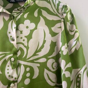 Zara green satin printed shirt XS