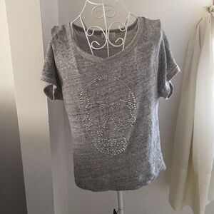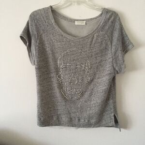 Zara grey short sleeve top with silver studded skull size S 100% cotton