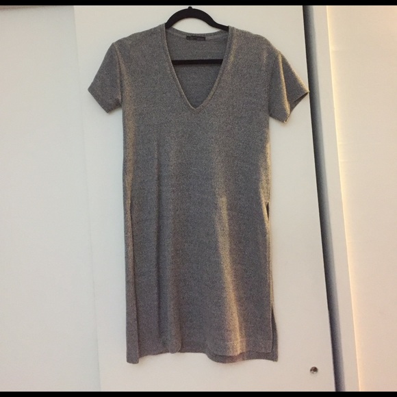 Zara grey v neck short sleeve tunic in size small with side slits. You can wear this over pants as a top or as a beach cover up.