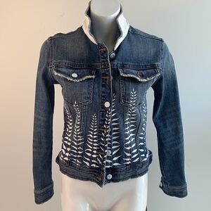 Zara hand painted distressed, artsy boho denim jacket, size XS