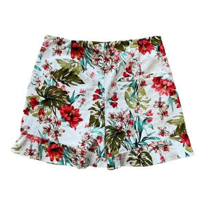 Size small Zara Shorts Cream Floral High Waist Side Zip Linen Blend Pockets Waist 14” Inseam 2”
