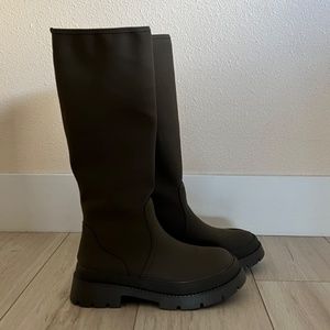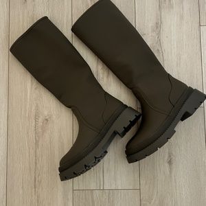 Never worn. Beautiful grey/ army green color. Very narrow at the calves.