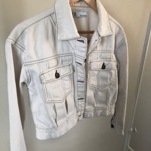 Zara ivory cropped denim jacket