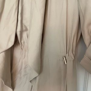 ZARA super lightweight jacket, perfect for summer nights. Matches everything. Worn once. Sleeves can be rolled down to full length. Adjustable waist pull string. Can fit a small and medium!