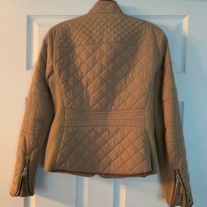 Camel. Zipper pockets. Zips on the arms. One inside lining of pocket is ripped