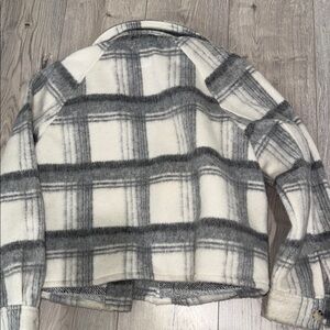 Zara jacket only used once size M collard can be used with the the extra layer or you can remove it because it has button’s collard is cream the rest of the jacket is white and gray