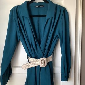 Zara jumpsuit with pockets. Beautiful, rich green, worn once, belt not included