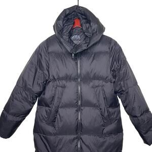 Zara kids black hooded puffer long jacket 13-14. Gently used condition. Might need a wash from storage. No flaws. Heavy warm hooded long jacket coat