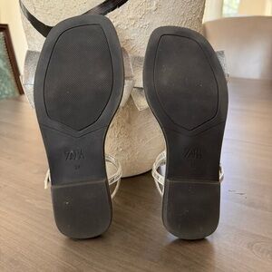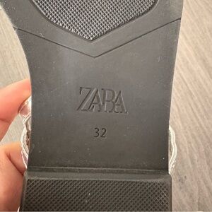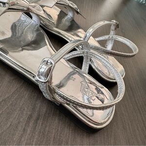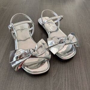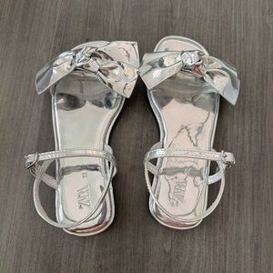 Zara kids girls mirrored bow sandals shiny silver size 32 or US 1