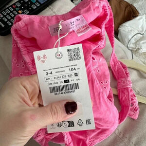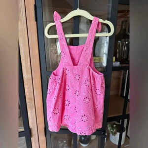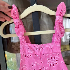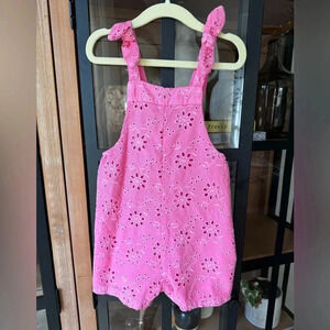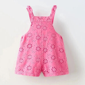 Zara kids romper toddler girl barbie pink eyelet embroidered bow overalls flower
