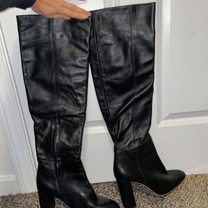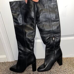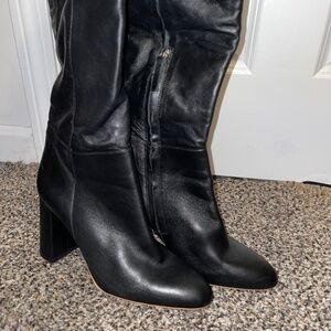 Zara knee high black block heel boots with zipper Womens size 41 (9.5-10 US)