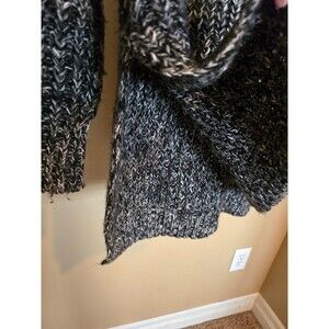 Cowl necked knitted sweater by Zara. So pretty worth a marble black and white color scheme. Perfect for winter. Slits on the sides, longer in the back and a Cowl Neck. Dress this up or wear it casual.