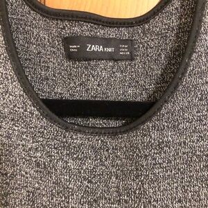 Gently used midi dress in great condition. This dress is lined with faux leather trim. Perfect for work dress or casual day out. Has two slits on the bottom and is speckle grey and white pattern. No visible stain or marks.