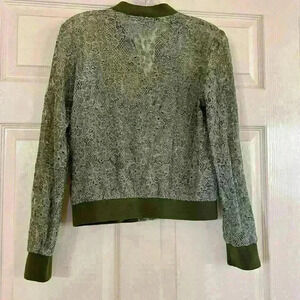 This jacket is so cute! Lace with silver zipper. Beautiful Green color. Buyer pays shipping.