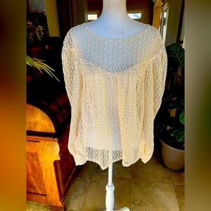 Zara ladies, sheer lace, long sleeve top very good condition Small. Oversized