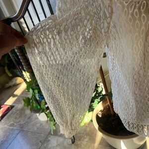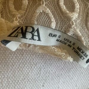 Zara ladies sheer lace top long sleeve ties in the back would be super cute with a camisole underneath could be worn over a bathing suit very good condition, cream color