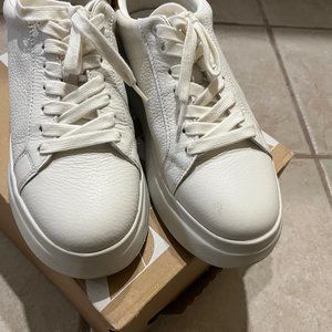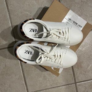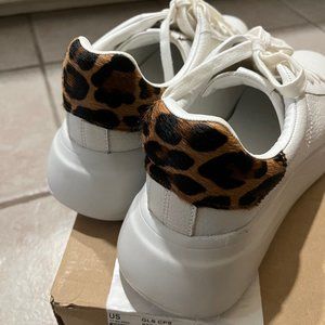 Zara leather platform sneakers with calf hair leopard accent Size 8