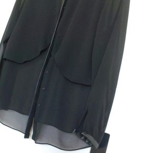 Zara leather trim sheer blouse