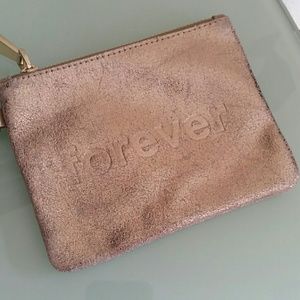 New & unused Zara leather wristlet clutch in real distressed leather. Soft gold color. Wrist strap is removeable! Forever ... & ever. Authentic Zara. Dimensions : 6.25 in x 5 in