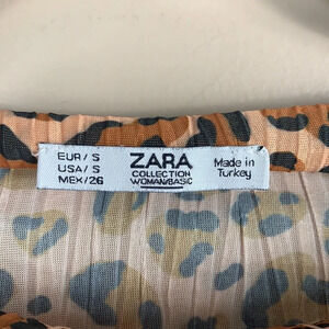 Zara leopard 3/4 sleeve pleated blouse sz sm