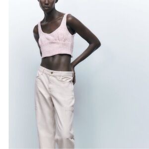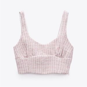 Zara light pink trendy tweed crop top NEW