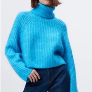Zara light Blue Wool Blend Turtleneck Oversized Sweater(Size Small)