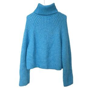 Zara light Blue Wool Blend Turtleneck Oversized Sweater EUC Approx measurements Pit to Pit 22”, Length 22.5”